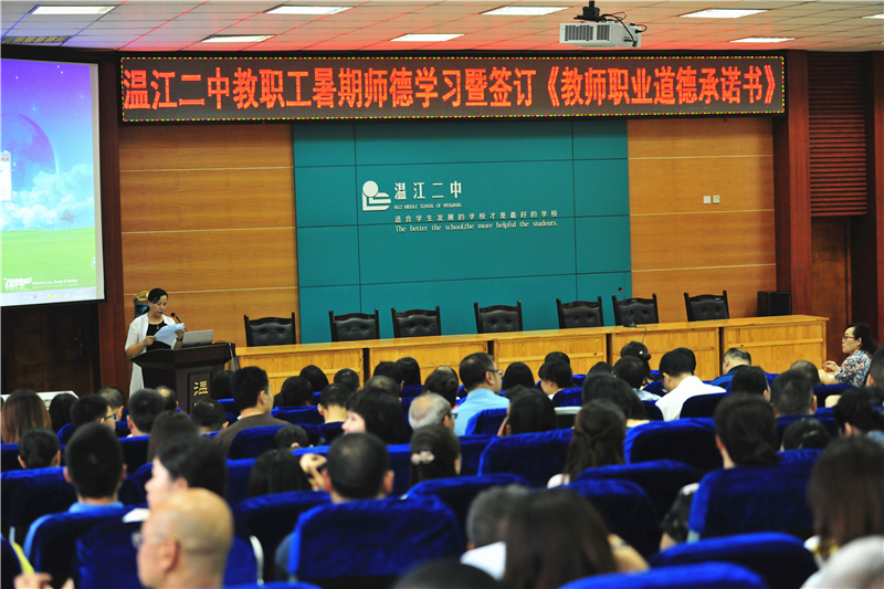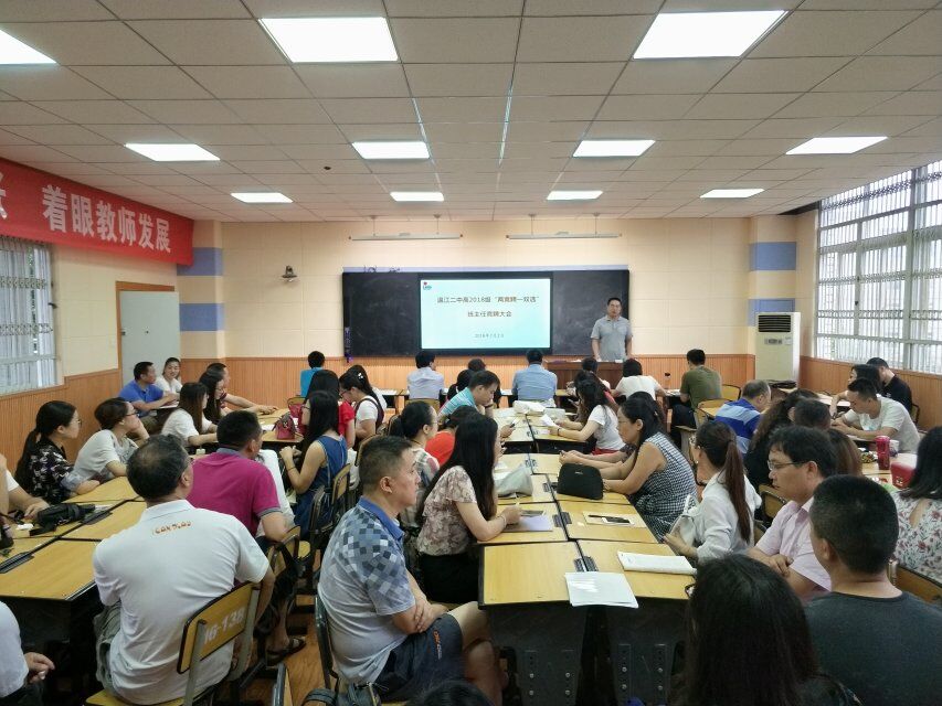 2018年6月25日,初2018全体教师在温江二中阶梯教室召开了初2018级两竞聘一双选的前期宣传会。温江二中分管初中教育教学工作的副校长袁淑英,认真细致地宣传了《成都市温江区第二中学校初2018级两竞聘一双 [详细]