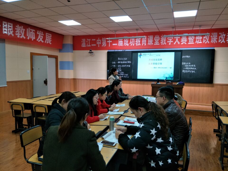 温江二中第十二届成功教育课堂教学大赛暨班改课改教学展示活动拉开帷幕,本校陈英老师代表高中历史组参赛并执教《新文化运动》一课。陈老师独具匠心、智慧创新设计了《新文化运动》一课,并在2017年12月8日星期 [详细]