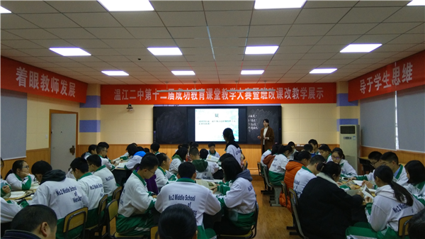 温江二中第十二届成功教育课堂教学大赛暨班改课改展示初中组于12月4日开始至12月8日进行,历时五天,共有九个学科参赛。参赛选手中既有学科带头人也有新入职教师,听课教师中有本组学科教师,也有跨学科、跨年 [详细]