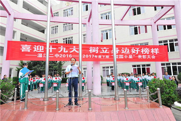 为推进教育内涵式发展,培养学业成绩优秀、兴趣爱好广泛、综合能力突出的二中学子,增强学生榜样的教育作用。9月26日,温江二中在升旗广场隆重举行校园十星表彰大会,表彰2016—2017学年度下期评比出的陈昊等11 [详细]