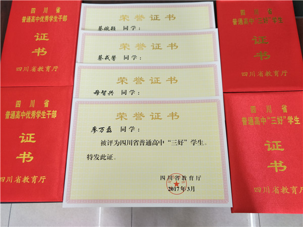 接四川省教育厅表彰通知(川教函[2017]144号),我校高2017届1班母智兴、高2017届2班蔡戎馨、高2017届2班廖万磊、高2017届3班蔡婉颖等四名同学获得2017年度四川省普通高中三好学生、优秀学生干部荣誉称号。 长 [详细]