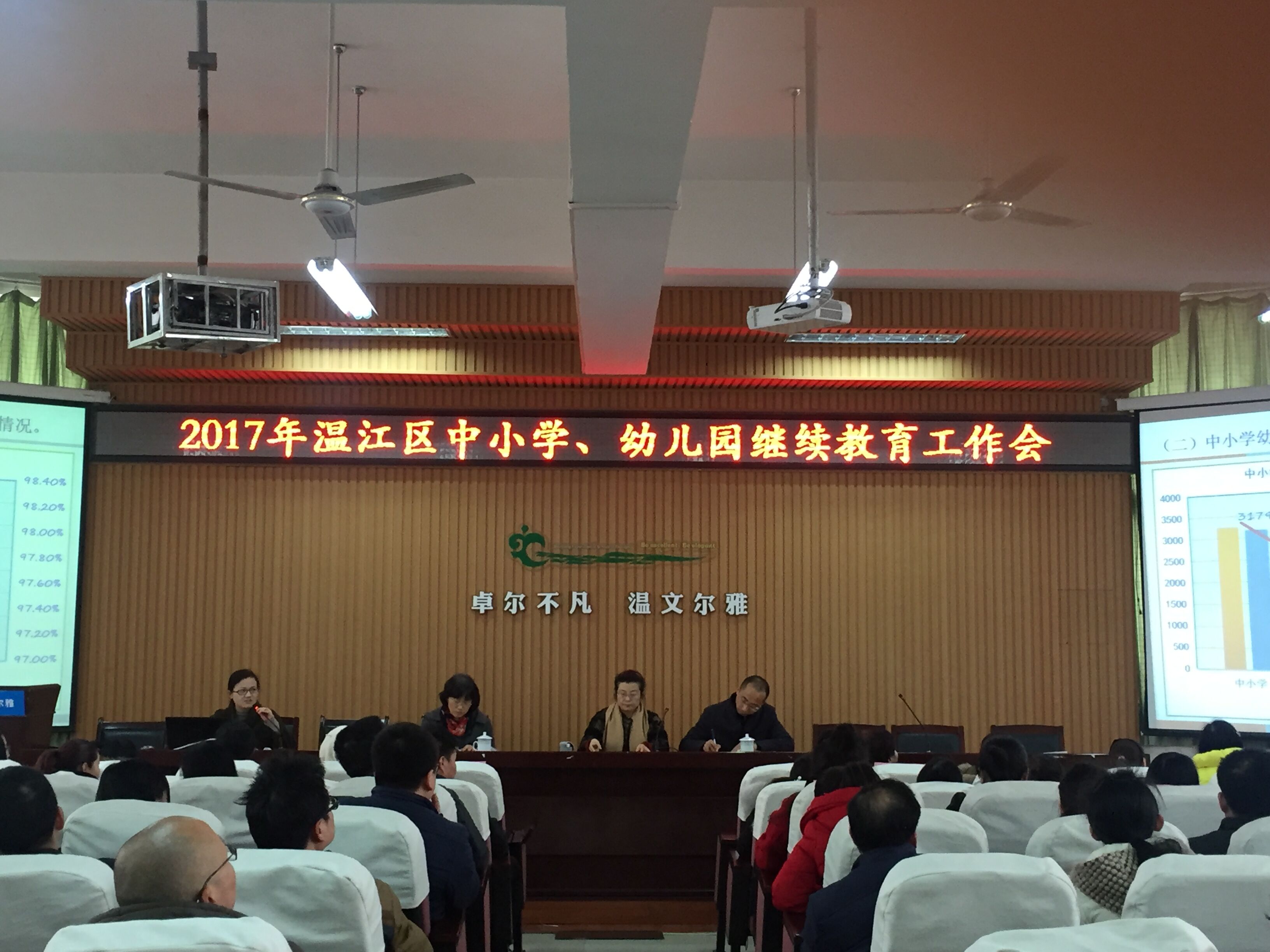 2017年3月17日下午两点在温江区实验学校召开了温江区中小学(幼儿园)继续教育工作会。会议由区研培中心主任肖红主持,各学校分管教师继续教育工作行政及工作人员参加,我校教导处主任洪琼书参加了此次会议。 [详细]