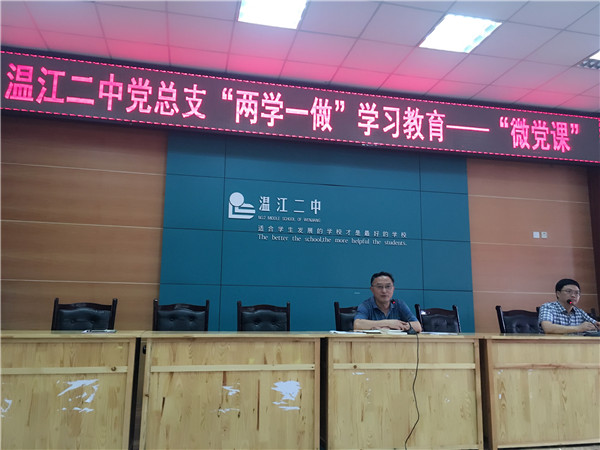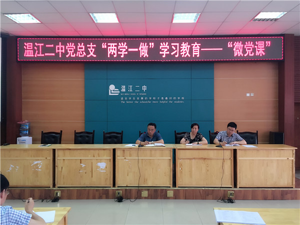 为深入推进我校“两学一做”学习教育和开展庆祝建党95周年活动,落实各项任务到每个支部、每个党员,根据《温江二中党总支开展“两学一做”学习教育实施方案》的安排部署。6月20日,温江二中全体党员同志聚集在学校阶梯教室,开展温江二中“两学一做”学习教育活动。大会由温江二中党总支书记李先强同志主持,各支部书记、委员、学校行政及全体党员参加了此次活动。