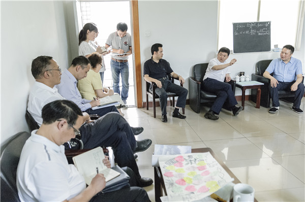 王道明书记向袁老师赠送了鲜花,对袁老师多年来的默默耕耘表示感谢,并询问袁老师对温江区教育事业发展的建议和意见。当得知袁老师已经从教三十余年,并且是温江名师工作室的成员时,王道明书记说,教师对学生的学习和成长起着至关重要的作用,如何让教师优良的师德积极、正面地影响学生,在潜移默化中引导学生健康成长成才,是温江区广大教师和教育工作者值得思考的问题。