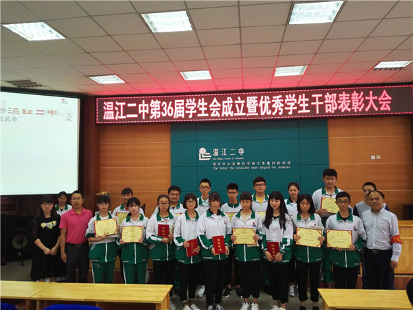 9月25日,温江二中第36届学生会成立暨优秀学生干部表彰大会在学校阶梯教室举行。出席本次大会的有温江二中副校长郭久清、德育处副主任兰宏利、德育处主任助理罗强。