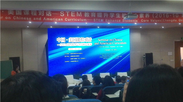 由成都市教育对外交流中心主办,美国教育联合会支持的中美课程对话——STEM教育提升学生核心素养研讨会,于10月19日在成都市高新区泡桐树小学(天府校区)举行,温江二中校长助理熊书钢,国际理解教育备课组长朱梅参加此次会议。