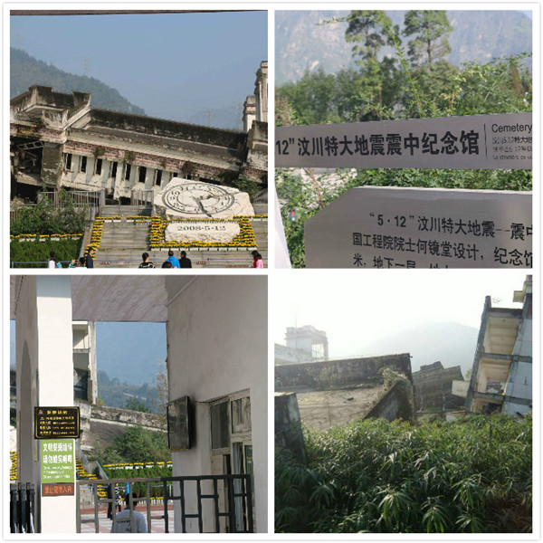 此次活动的首站是5·12地震的震中——汶川县的映秀镇。虽然距离大地震已经过去8年,但仍可见大地震的影子,废墟、遇难者公墓、观景台、百花大桥、牛圈沟处处遗迹让同学们次次驻足,感到当时的震撼和颤抖。同学们来到了漩口中学,听导游讲解发生在这里感人的故事,好多同学都流下了感动的眼泪,也让学生们认识到要珍爱生命、珍惜今天的幸福生活。