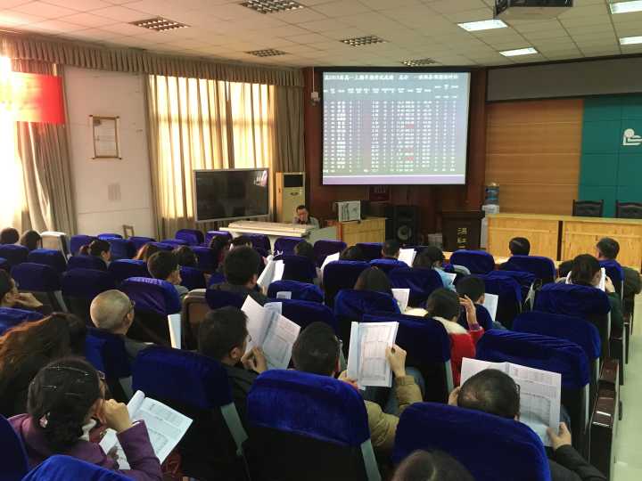 对学生的成绩数据管理力求精细,班级建设切实落实责任。11月16日下午,高2016级在阶梯教室召开了以“主体更突出,集体更和谐,个性显特长”为主题的半期考试成绩分析会。年级组长魏永德老师将各科成绩的各项指标印发到每一位教师手中,详细地分析了各科任教师在班级学科教学中的成绩与问题,为接下来的教学和管理工作提供了依据。魏永德老师还从班级整体成绩和表现方面,对年级、班级风气进行了指导,要求各班查找问题,落实责任,共同促进年级建设。