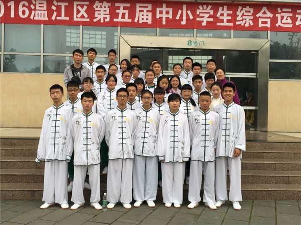 11月17日,2016年第五届温江区中小学生综合运动会太极拳项目的比赛在温江中学高中部举行,温江二中初中太极拳队和高中太极拳队参加了此次比赛。