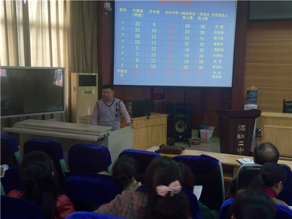 2016年11月18日下午,初三年级全体教师在阶梯教室召开半期考试成绩分析会。