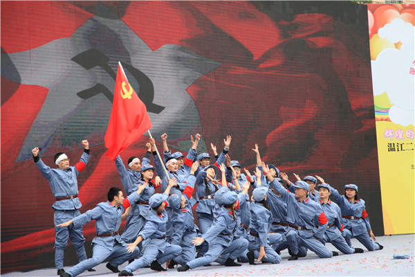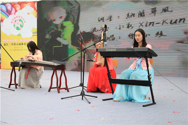 下午,师生才艺展由教职工舞蹈队的《复兴之路》拉开序幕。随后,温江二中和崇州蜀城中学的学生以优美的舞姿、悠扬的歌声、精彩的小品等尽情演绎着青春的风采。