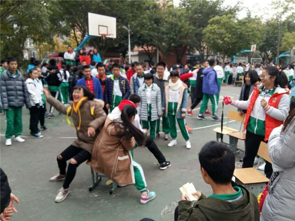 才艺展后是全校师生的游园活动,篮球场、操场、乒乓球场、孝行广场上熙熙攘攘,络绎不绝,每个班级都井然有序地在制定位置进行着着游戏,每个人脸上洋溢着欢乐的笑容。掷筷乐、听歌猜名、趣味气球、爆破吹烛、新版抢凳子、你画我猜、你的能量超乎candle的想象、心灵手巧、趣味水上漂等等几十个新奇独特小游戏让校园沉浸在一片欢声笑语之中。