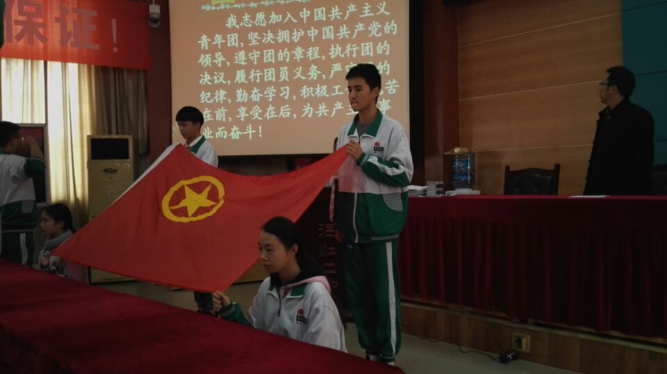 仪式在嘹亮的团歌声中拉开序幕,新团员们面对着鲜艳的团旗,举起右拳,向团组织庄严宣誓,铿锵的誓词,豪壮的誓言,激励着在场的每名青年学生,表达了同学们热爱祖国、热爱共青团、热爱校园的美好心声。
