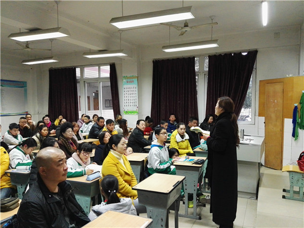 2017年2月24日下午4:50,温江二中八年级全体师生及家长,在学校多功能厅召开了八年级下期的学生表彰会暨家长会,年级组长万欣主持了本次会议,教导处副主任李斌莅临并指导工作。