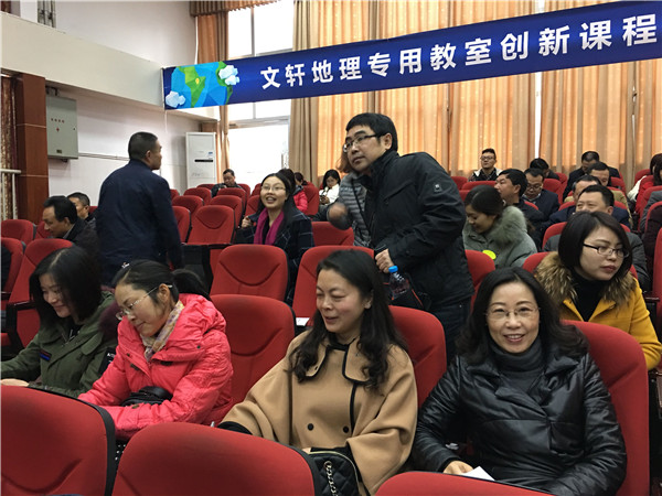 2017年3月2日上午9:30,温江二中初中地理备课组的老师们与四川省各地市州的地理教师和相关领导以及新华文轩集团一起,参加了由成都市教育科学研究院主办的在寿安中学举行的新华文轩集团《地理专用教室创新课程教研基地授牌暨捐赠仪式》。