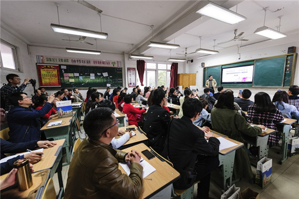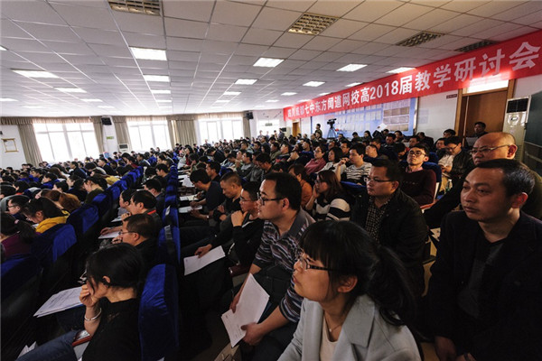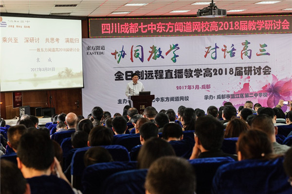 2017年3月31日,春风和煦、阳光明媚,来自贵州、甘肃、广西、云南、重庆、四川等省(市)百余所学校400余名领导和老师齐聚温江,参加由成都七中东方闻道网校主办、温江二中承办的“全日制远程直播教学高2018届研讨会”。