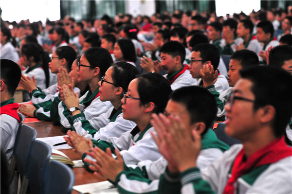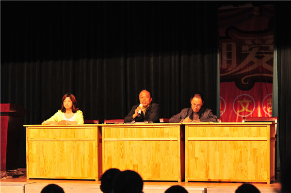 初一年级于5月5日在学校多功能厅召开了半期表彰会,会议由年级组长黄雁老师主持。大会首先举行了隆重的颁奖仪式,获奖同学上台合影留念。接着是2班的杨诗采和8班的虞洁作为优秀学生代表发言。然后是年级组长陈建明老师作了激情四射的讲话。最后郭久清副校长作了总结,郭校长将三句箴言分别送给学生、老师和家长。表彰会在感动与掌声中落下帷幕。