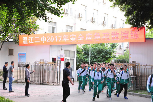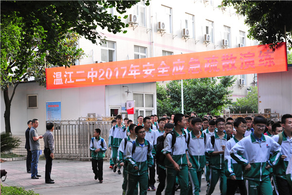 珍爱生命 警钟长鸣 ——温江二中举行住校生“安全应急疏散演练”活动