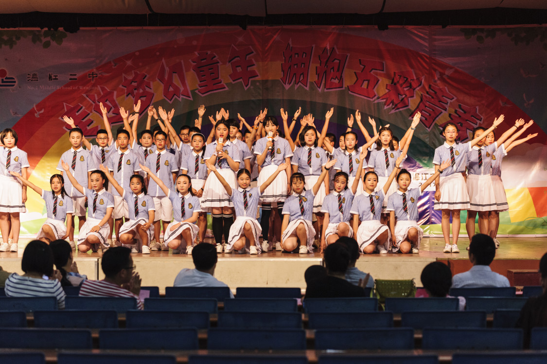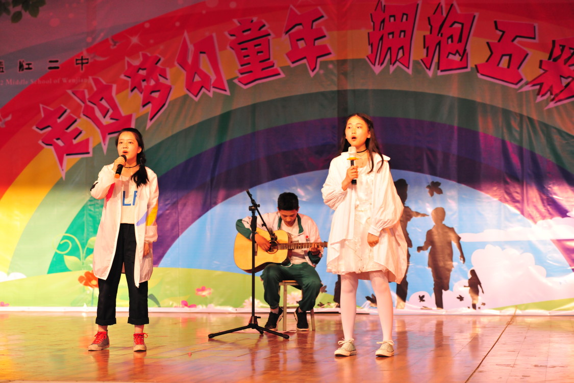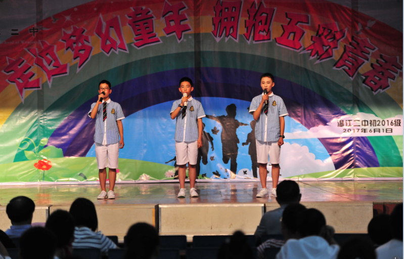 火红的六月,阳光灿烂,树绿花红。6月1日下午,温江二中2016级的孩子们在学校多功能厅举行了“走过梦幻童年·拥抱五彩青春”的文艺汇演。温江区教育局教管中心主任蔡祖民、学校校长李彦康,副校长袁淑英、郭久清、袁成,及初一年级全体师生和家长们相聚一堂、欢庆孩子们的最后一个儿童节。