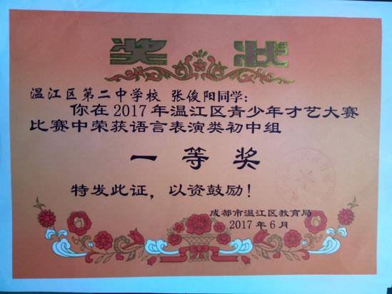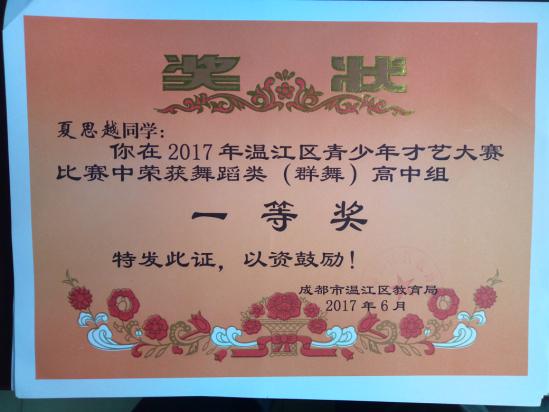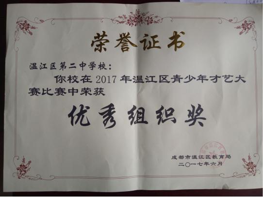 我校共有68名同学参加温江区“第十二届青少年才艺大赛”,共有45名同学获得奖项,其中一等奖22名,二等奖10名,三等奖12名,鼓励奖1名,学校荣获“优秀组织奖”。