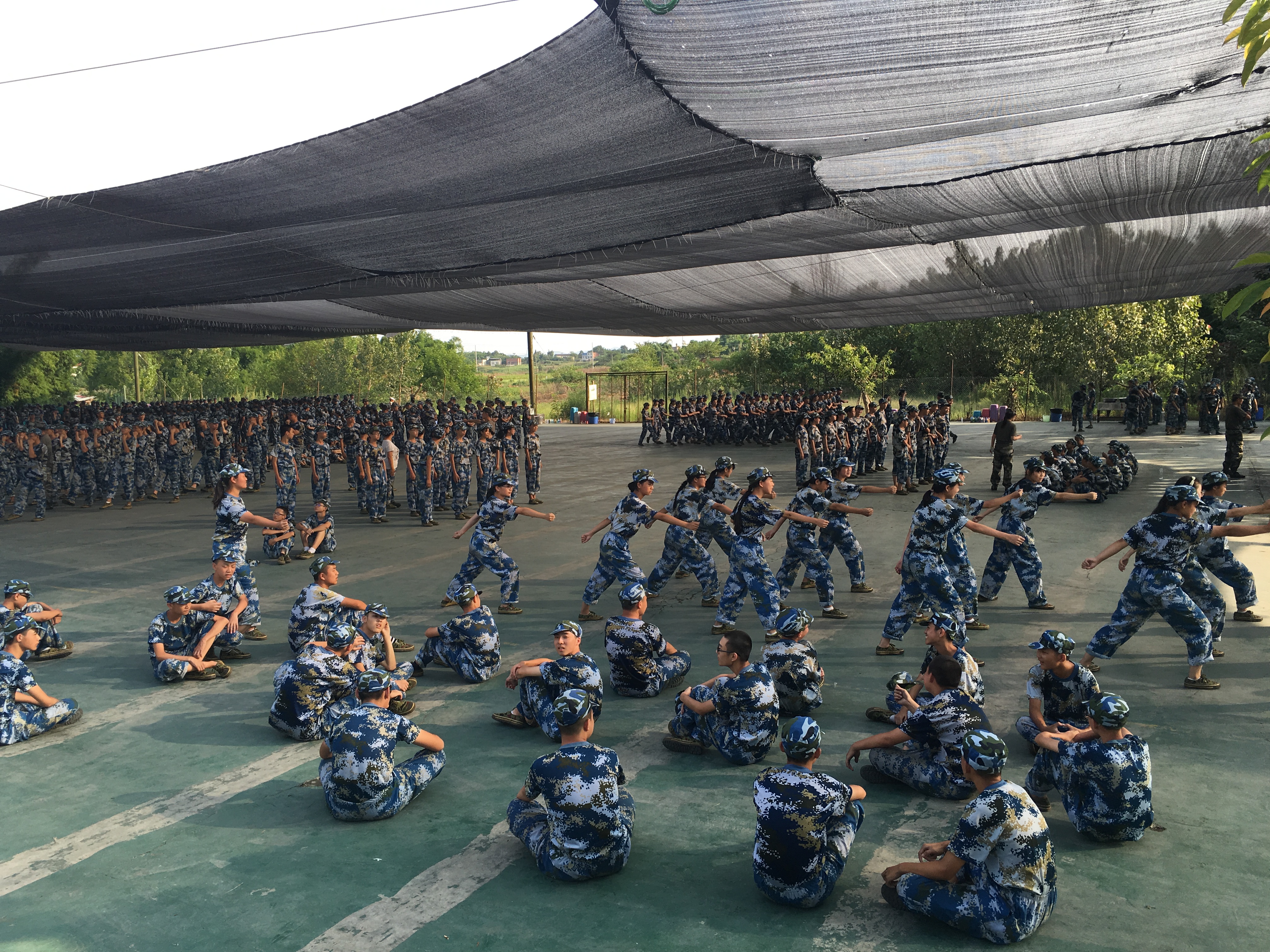 在训练场上,同学们蓄势待发,笃定的眼神流露出军人般的坚毅,嘹亮的口号彰显出满腔热血。烈日炎炎,丝毫挫不伤他们坚强的意志和克服困难的勇气,训练时他们咬牙坚持,任凭日晒风吹,身姿始终挺拔如松;休息时他们尽情欢笑,引吭高歌,共同诉说着对于高中生活的向往与追求。更值得一提的是,每当老师们走过一个训练方阵,同学们都会停下自己手里的事,恭敬地向老师行上一个标准的军礼,并用雷鸣般的声音向老师们问好。