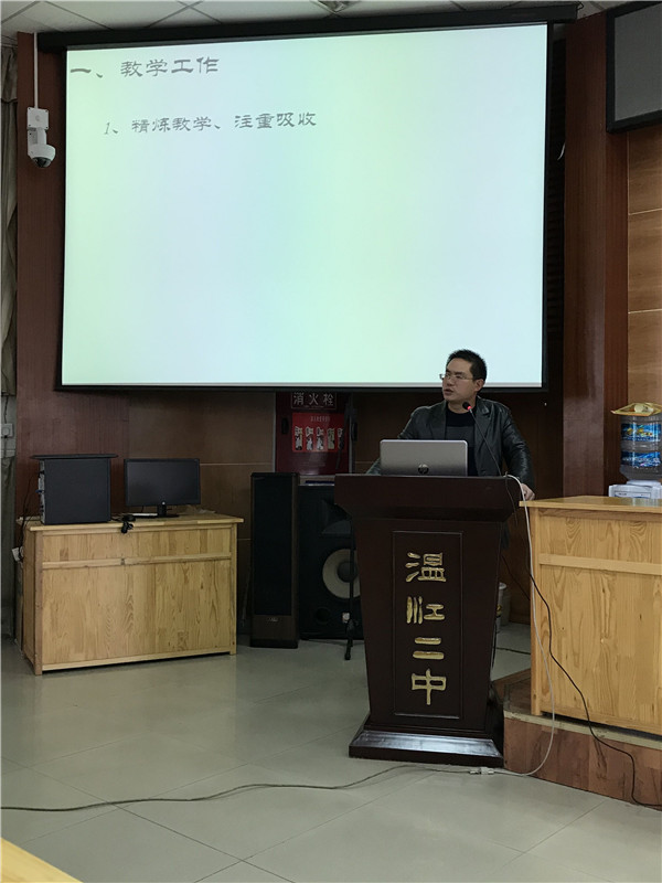 2017年10月16日下午,在学校教职工例会上,温江二中高中各年级进行了工作交流。