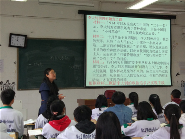 本次教研活动以陈英老师执教的《新文化运动》为载体。陈老师以图片为导入,以文字故事为依托,让学生直观而清晰的认识到新文化运动兴起的背景。教学过程中采用时空观念的方法,引导学生学会历史解释体会家国情怀,充分展示了核心素养下的历史教学。课后,参与教研的老师对陈老师的课堂进行了深度的讨论交流,也提出了切实可行的意见。历史名师洪琼书对陈老师的课堂表示了高度的肯定和赞扬,认为本堂课选用史料新颖,注重对学生的方法指导,充分体现了历史的核心素养。
