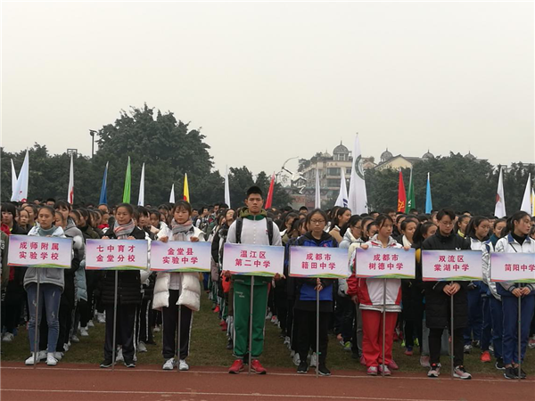 12月2日上午,运动成都2017年成都市第四届全民健身运动会暨成都市第十届青少年体育俱乐部30人31足跑比赛在崇州市体育中心举行。来自成都全市的63支队伍2300余人参加了此次比赛。我校30余名高三同学组成的代表队,参加比赛。比赛中,队员们脚绑在一起,心连在一起,喊着整齐有力的口号,步调一致,奋勇向前!最终以9”36的优异成绩获得全市高中组一等奖。
