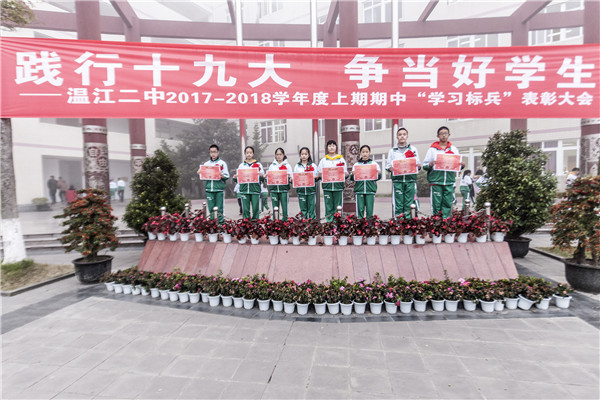 践行十九大 争当好学生——温江二中2017—2018学年上期中“学习标兵”表彰大会