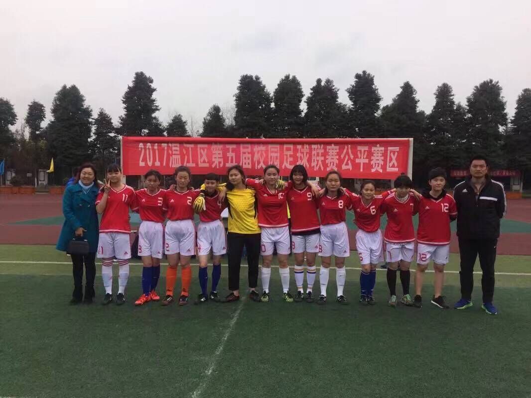 在 2017年温江区第五届校园足球联赛中。我校高中男子、女子足球队上下齐心,顽强拼搏,凭借着强硬的技术和默契的配合获得了女队第二名,男队第一名的好成绩,并以团体总分获得了总成绩一等奖!在此,特向全校师生及社会报喜。并对我校足球队全体队员表示热烈祝贺。同时对辛勤训练的教练员以及运动员所在班级的班主任、任课老师表示衷心的感谢!