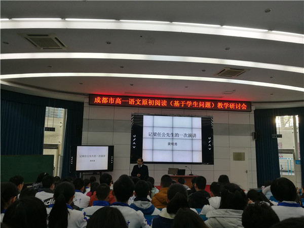12月21日上午,我校高一年级语文组全体教师赴成都七中林荫校区参加成都市高一语文原初阅读(基于学生问题)教学研讨会。本次教研紧紧围绕如何开展高一语文原初阅读(基于学生问题)的主题展开。
