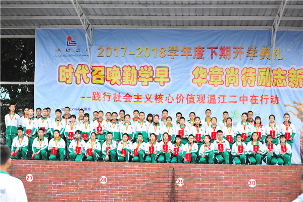 3月5日,温江二中2017-2018学年度下期主题为“时代召唤勤学早,华章尚待励志新”的开学典礼在学校操场隆重举行。新学期新面貌,莘莘学子从二中逐梦起航!