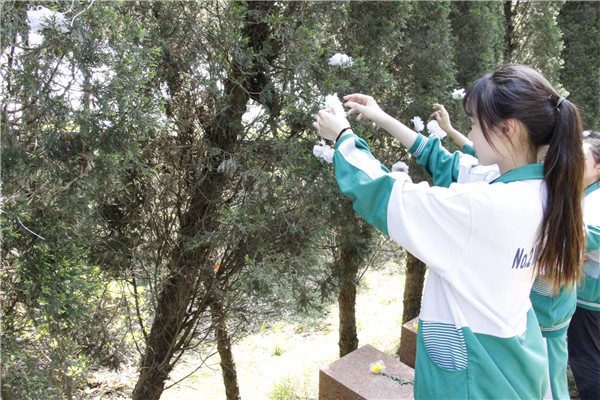 我校还通过班会、校园广播等形式,教育大家要抛弃陈旧观念和陋习,积极开展鲜花祭祀、网上祭祀、树祭,争做“文明祭祀、低碳生活”的践行者、先行者。