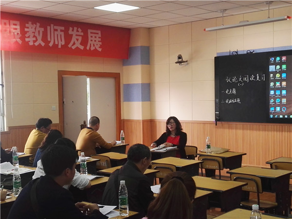 三堂课结束后,三位老师对本堂课的进行了简单的说课。研培中心语文教研员戴黎老师,组织全体初三语文教师针对这三堂课例探讨三个问题:课堂中如何体现以学为中心,如何做到复习的有效性,怎样落实复习的有效性?通过热烈的讨论,大家达成了共识:中考复习中,要充分了解学生的问题,注意复习的针对性;答题技巧和方法重在让学生学会运用,内化为学生的学习能力和素养;复习中,一定要注重对于学生的学习结果评价。