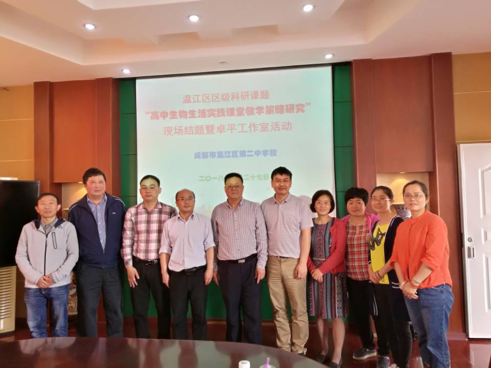 二中副校长袁成代表学校对专家组就课题提出的宝贵意见表示感谢,要求《高中生物生活实践课堂教学策略研究》课题组认真消化和吸收专家组意见,继续深入研究生活实践课堂教学,促进温江二中师生和学校的快速发展。最后结题活动在学校领导、课题组研究成员在与专家合影留念后圆满落幕。