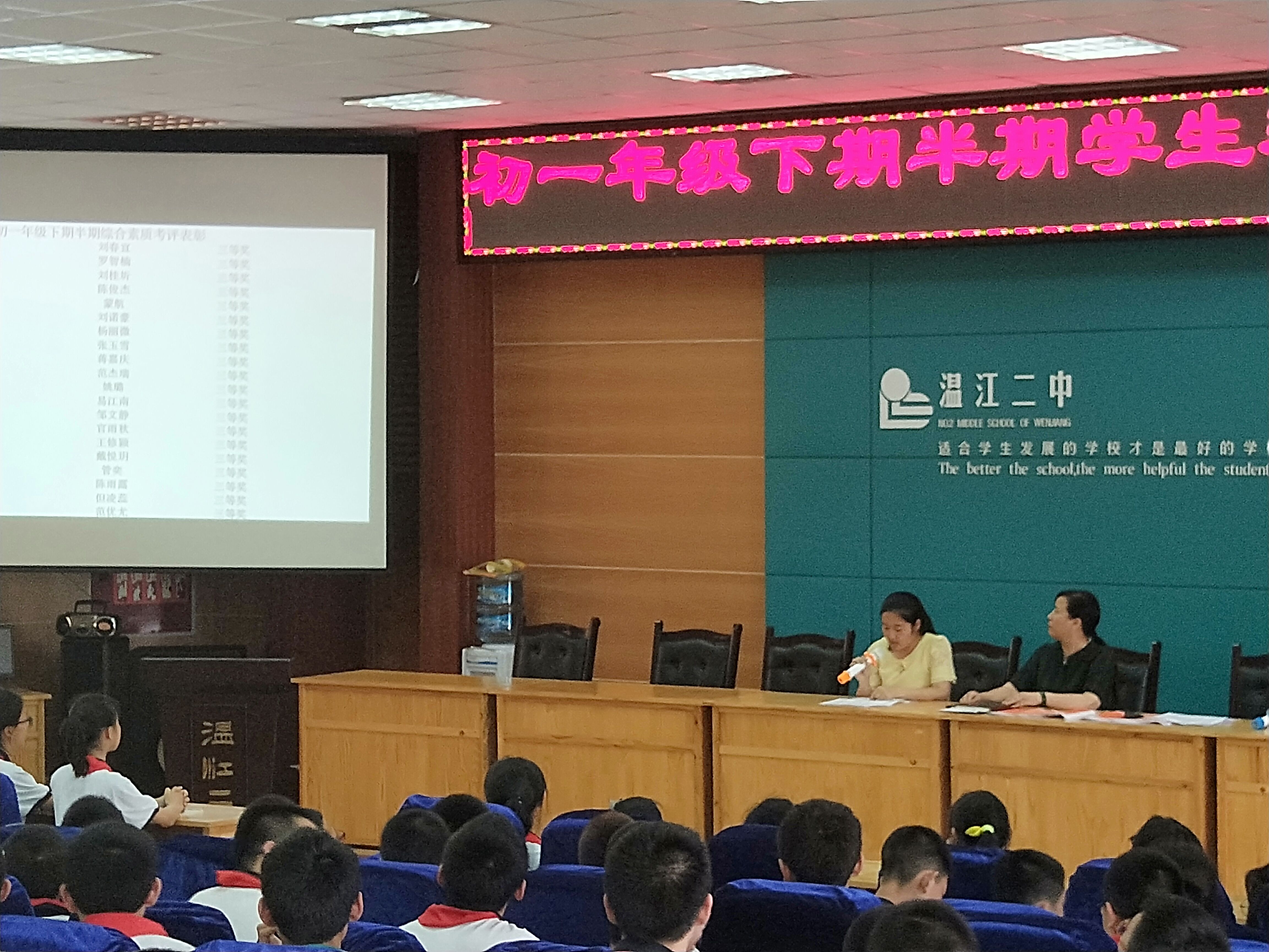 5月18日下午,七年级召开了半期表彰大会和家长会。