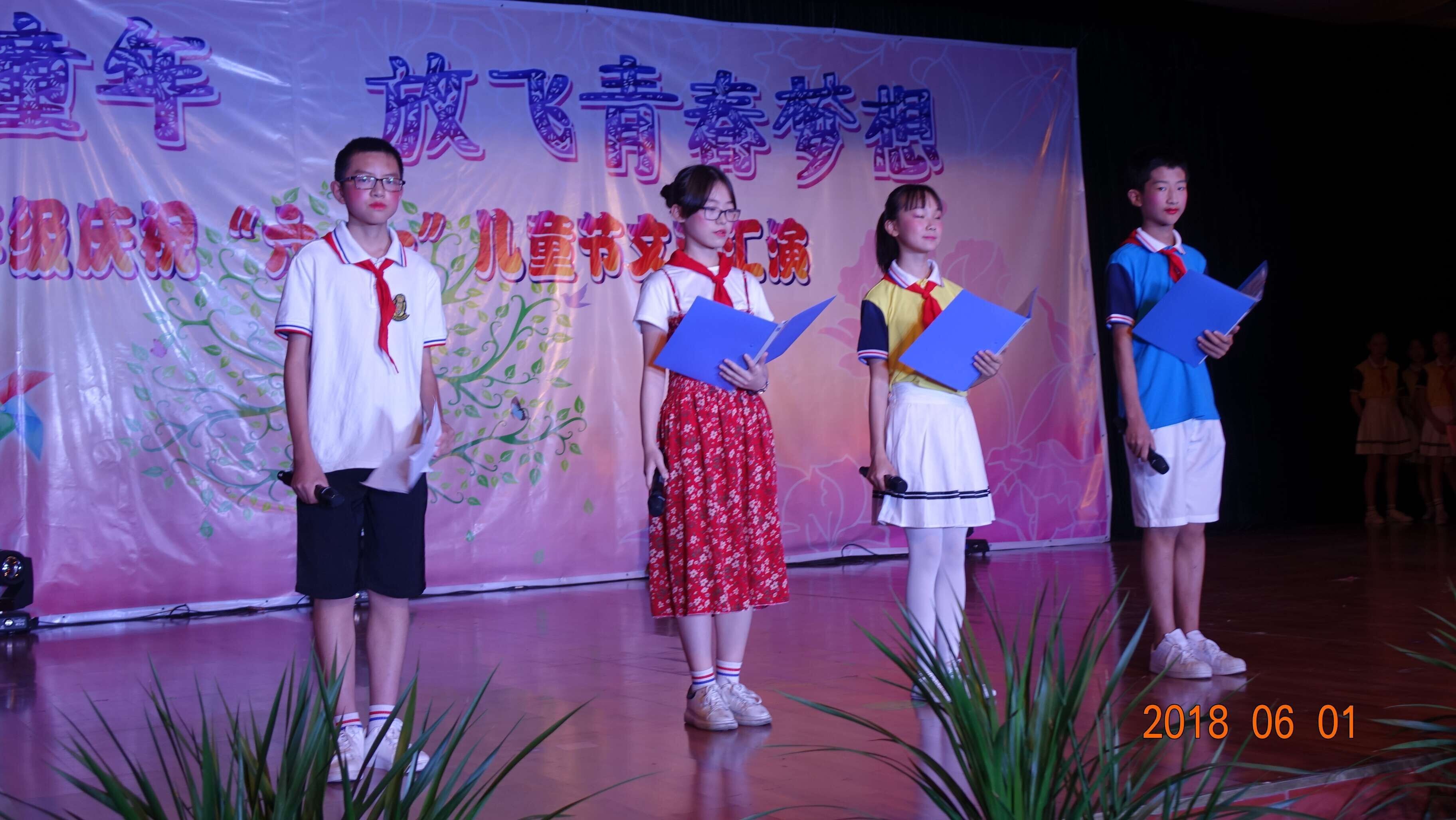 下午4时许,文艺汇演结束,师生们合影留念,然后回到教室分发礼物和纪念卡。初一的同学们度过了一个愉快而难忘的儿童节,他们告别了童年的稚嫩,不久的将来他们一定会成长为意气风发的青年。