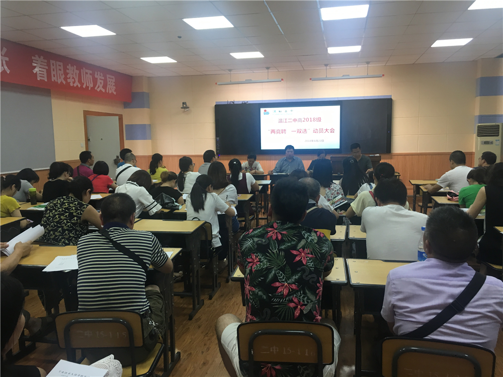 老高三结束,新高一开始,新一轮的征程开始启航。为了继续深化学校内部管理体制改革,加强学校年级组建设,建设一支结构合理、素质较高的年级管理队伍。2018年6月22日下午开启了“高2018级‘两竞聘,一双选’”序幕。