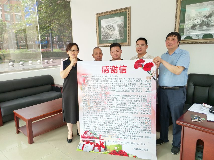 高考成绩揭晓后,温江二中部分学子和家长怀着激动的心情为学校送来一封封感谢信。