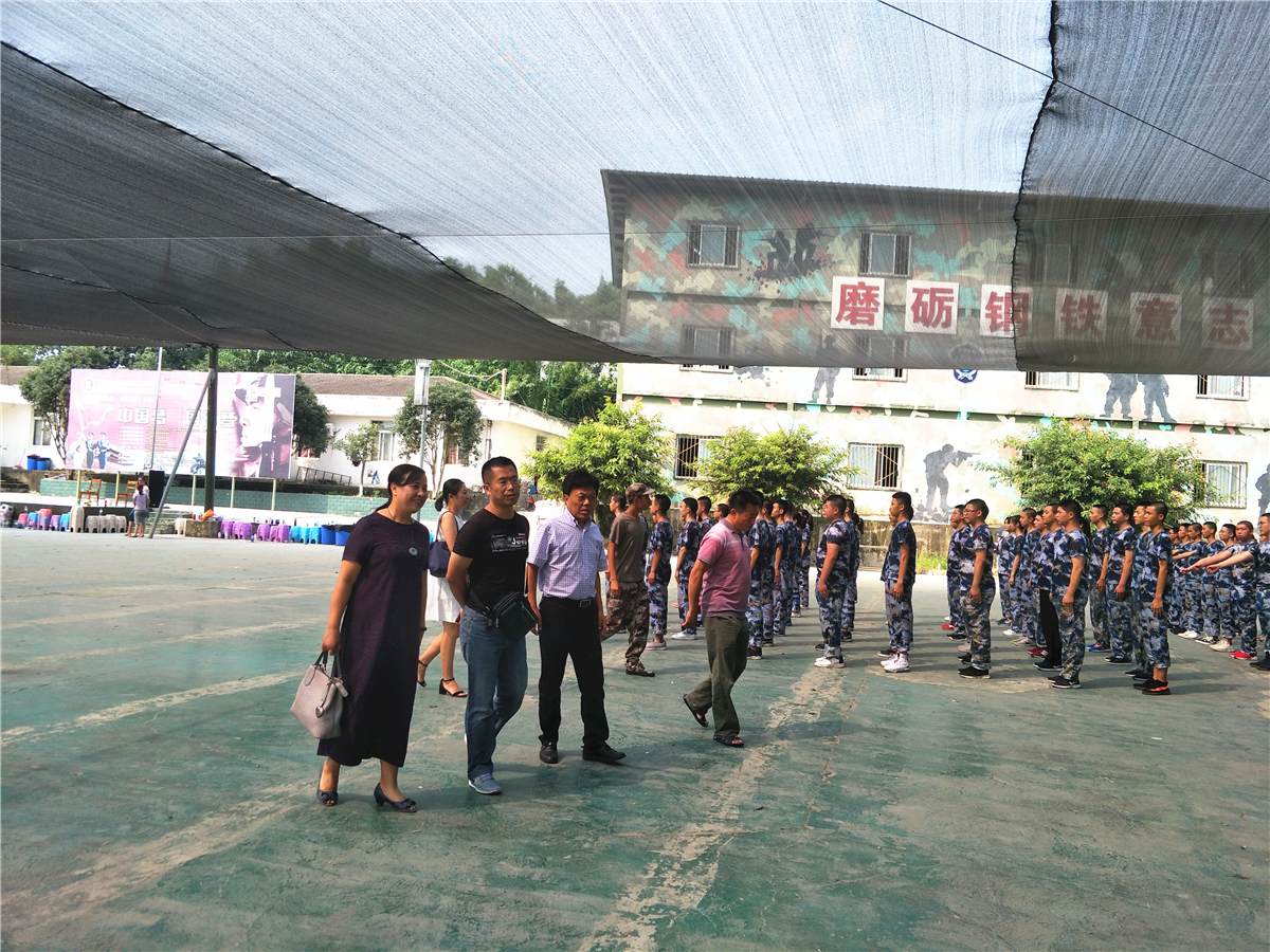 下午15:30,温江二中校长季玲,副校长袁淑英、副校长郭久清、副校长袁成和校长助理熊书钢携学校相关领导乘车来到训练基地,亲切慰问2018级军训全体参训师生和承训教官,在德育处主任王强、年级组长等随训人员的陪同下,季玲校长一行观看了同学们的训练情况。在训练间隙,学校领导和师生进行了亲切交流,对同学们认真积极的训练和勇于吃苦、敢于坚持的意志给予了高度赞扬。