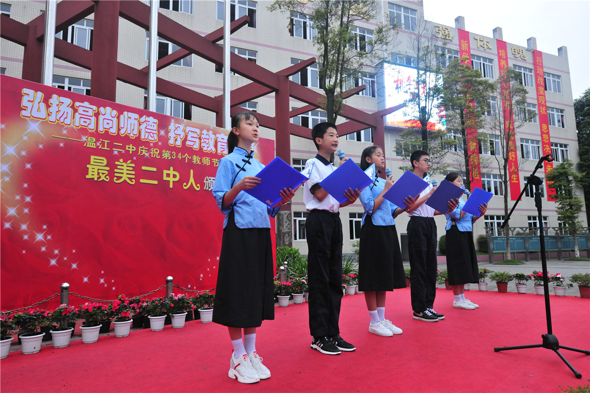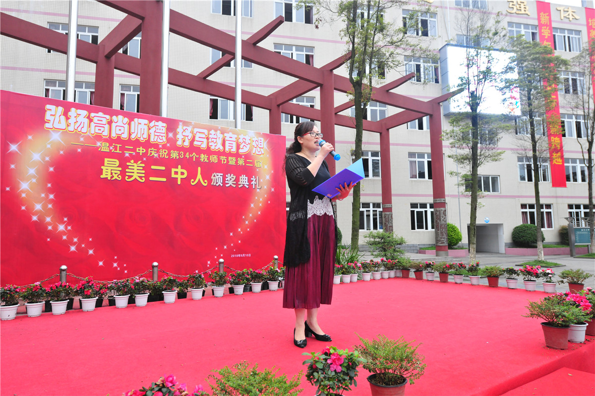 2018年9月10日上午,温江二中隆重举行庆祝第34个教师节暨第二届“最美二中人”表彰大会。