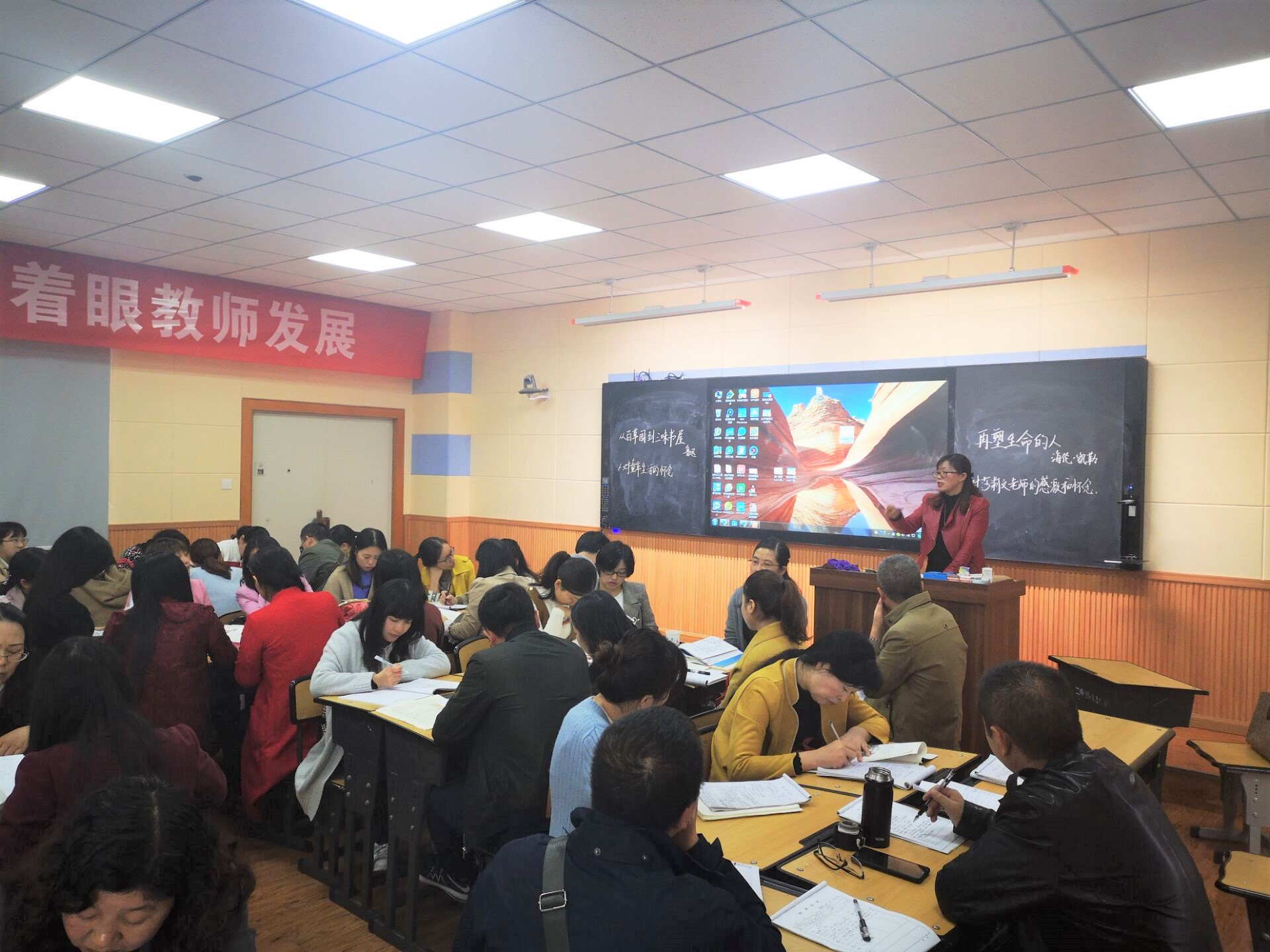 2018年10月16日,温江区语文科开展了学历案运用研究观摩课活动,我校作为学历案运用的实验学校,承担了此次活动。全区七年级语文老师参加了此次研究活动,区语文教研员戴黎老师,研培中心副主任刘吉全也到会,对老师做了培训。
