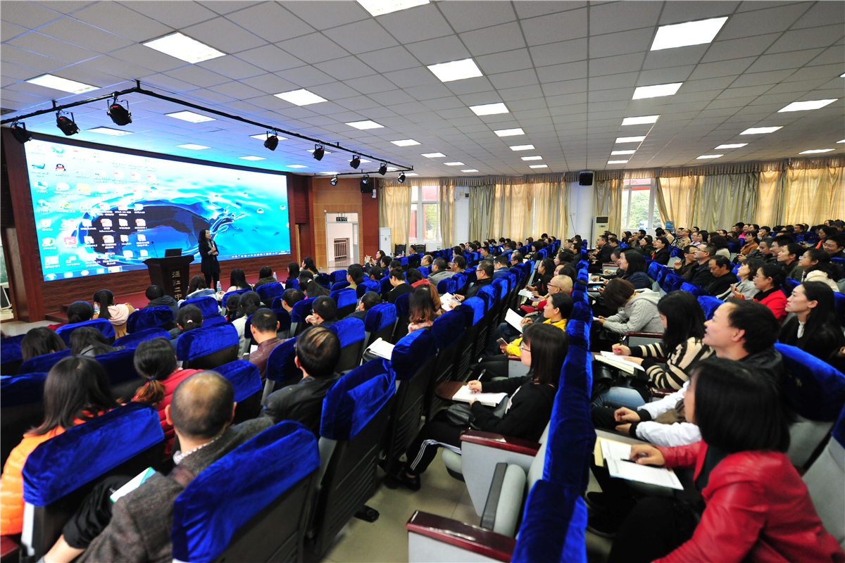 随后,在全校教职工大会上,陈立老师作了以《重构高效课堂》为题的专题报告。陈老师说,课堂是学生的社会,课堂是教师的生活;“玩”就是人性,好的课堂就要顺应学生的人性,要让学生体验“玩”的感觉,能让学生“玩”的课堂才可能是高效的课堂,才能让学生喜欢。陈老师说,教学要处理好两组关系,即“讲”和“教”、“听”和“学”的关系,传统课堂上老师的“讲”不等于“教”,学生的“听”不等于学,老师的“教”要构建学生的学习建构,学生才能真正成为学习的主人。陈老师说,教师必须站在新的高度来审视我们的学生,需要重构高效课堂;高效课堂就是“学生为主体、学情为主导、教师做助推”的课堂,这样的课堂全面呈现学生主体学习,培养学生自主学习能力、自我管理能力、自我发展规划能力;高效课堂要采用“五步三查”的课堂教学流程,“五步”即独学、对学、群学、展示、反馈,“三查”即三次学情调查。
