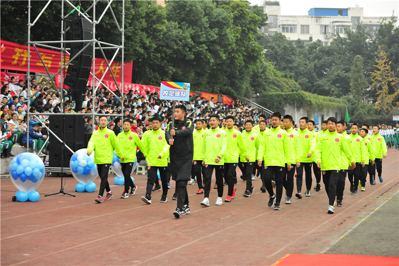 伴着激昂的运动员进行曲,国旗、校旗、会徽、彩旗方队、各年级方队以及教职工方队,以整齐有序的队形、精神饱满的状态完成了入场仪式。