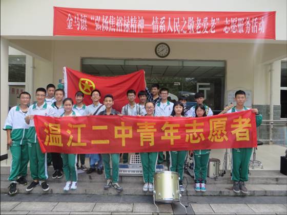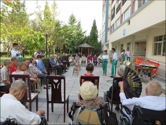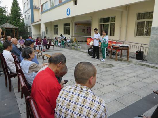为庆祝一年一度的重阳佳节,大力弘扬中华民族尊老敬老的传统美德,进一步营造敬老、爱老、助老的良好社会氛围,让广大老年人度过一个温馨愉快的重阳节,共青团温江二中委员会联合学校青年志愿者协会、学校器乐社等于9月29日下午在金马“康馨苑”养老院开展了以“敬老、爱老、助老”为主题的重阳敬老活动。