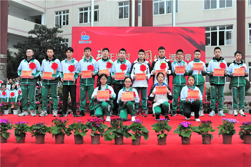 为全面贯彻党的教育方针,把“立德树人”目标落地生根,真正做到以文化人、以德育人,不断提高学生思想水平、政治觉悟、道德品质、文化素养,不断激发广大青年学子为中国梦矢志奋斗的正能量;为推进教育内涵式发展,贯彻我校“文化育人,特色办学,多元评价”的办学理念,培养学业成绩优秀、兴趣爱好广泛、综合能力突出的二中学子。我校在2019年2月25日早上的升旗仪式上举行了2018—2019学年度上期“校园十星”表彰大会。