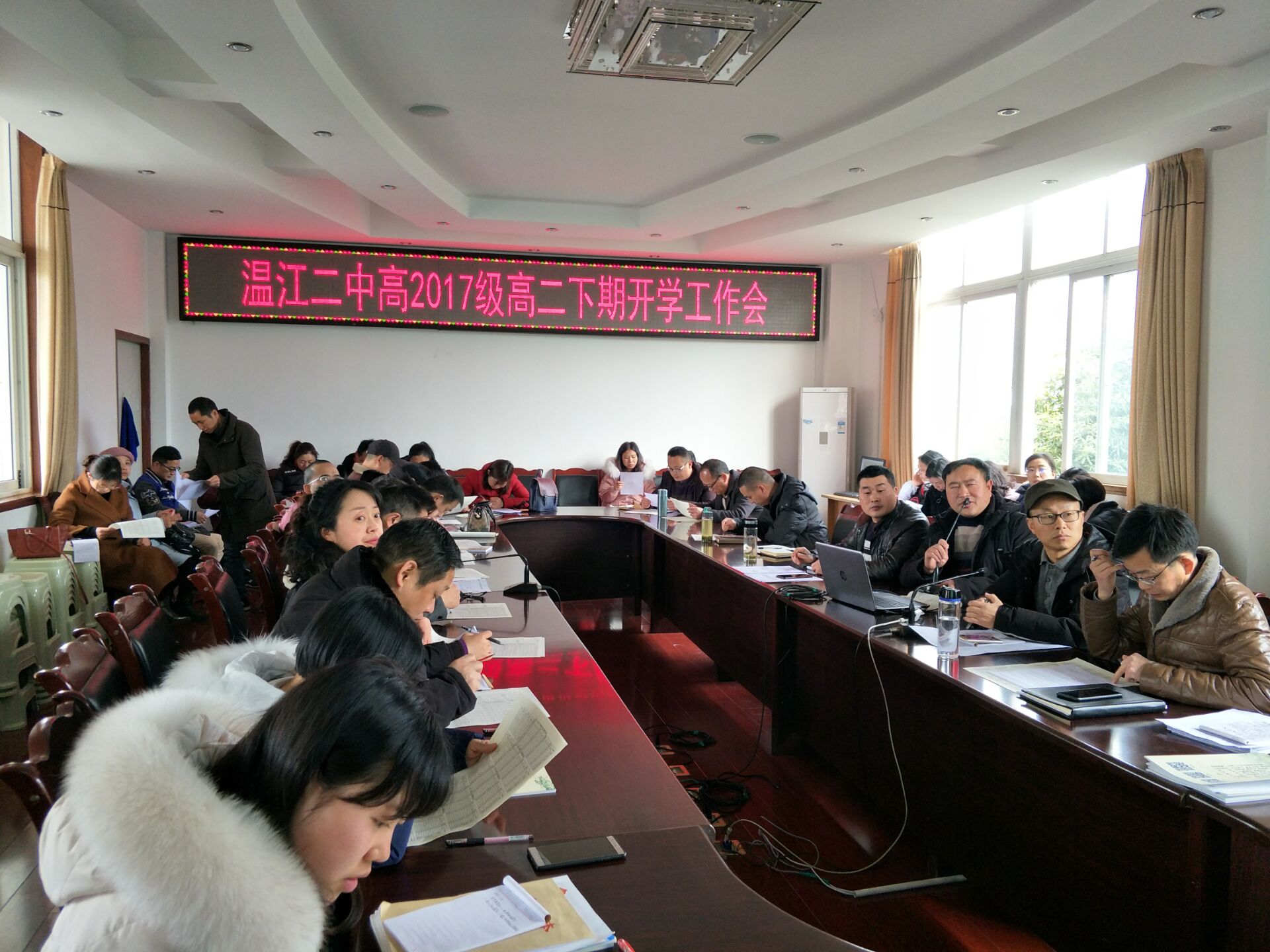 2月25日下午,高2020届高二上期期末考试教学业绩评估暨上期工作总结大会在综合楼四楼召开,此次会议由高二年级组长谢刚主持。
