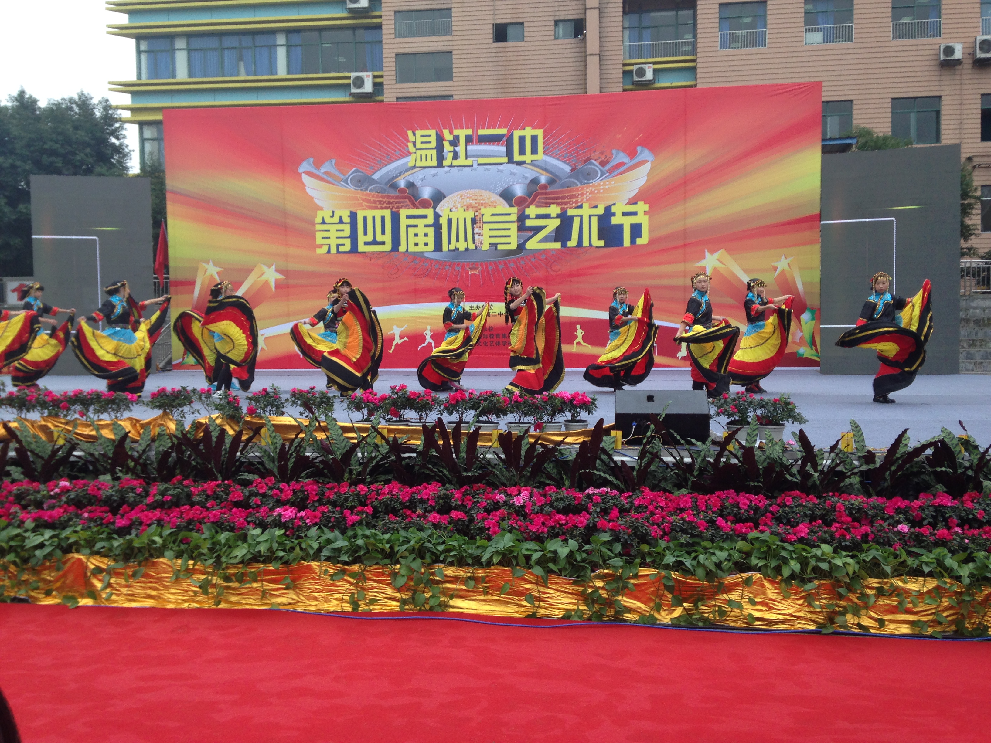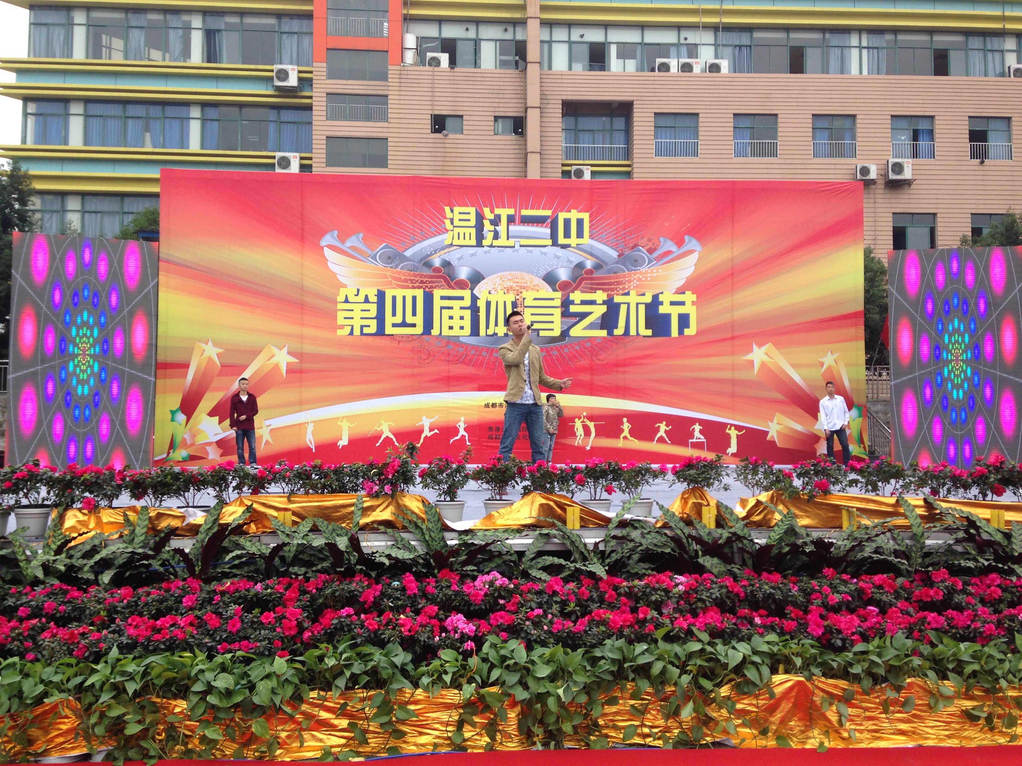 当今之世,我全体中华儿女,在中国共产党领导下,肩扛伟大的的国家使命和社会责任,各族人民大团结,在新世纪阳光普照下,意气风发地追寻复兴民族、强盛国家之梦想。青少年是实现“中国梦”的主力军,其强健的体魄、高远的眼光、坚强的意志、多元的才华,即是学校培养人的全部内涵。温江二中结合时代精神,坚定践行本校“文化育人、特色办学、多元评价”的育人理念,积极为学校师生搭建展示个性、才能的平台,彰显学校的艺体特色。今年正值该校体育艺术节之年,本学期开学伊始,学校行政团队经过多次研讨,坚持从群众中来到群众中去的艺术工作思路,确定举办主题为“阳光·梦想·民族·责任”的“第四届体育艺术节”。
