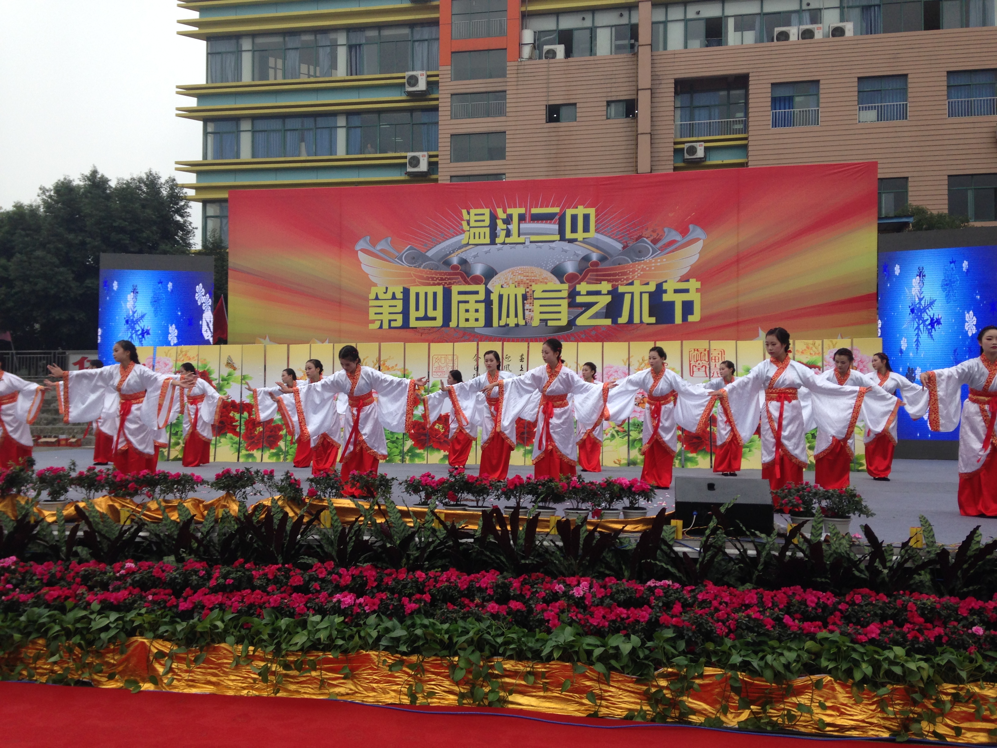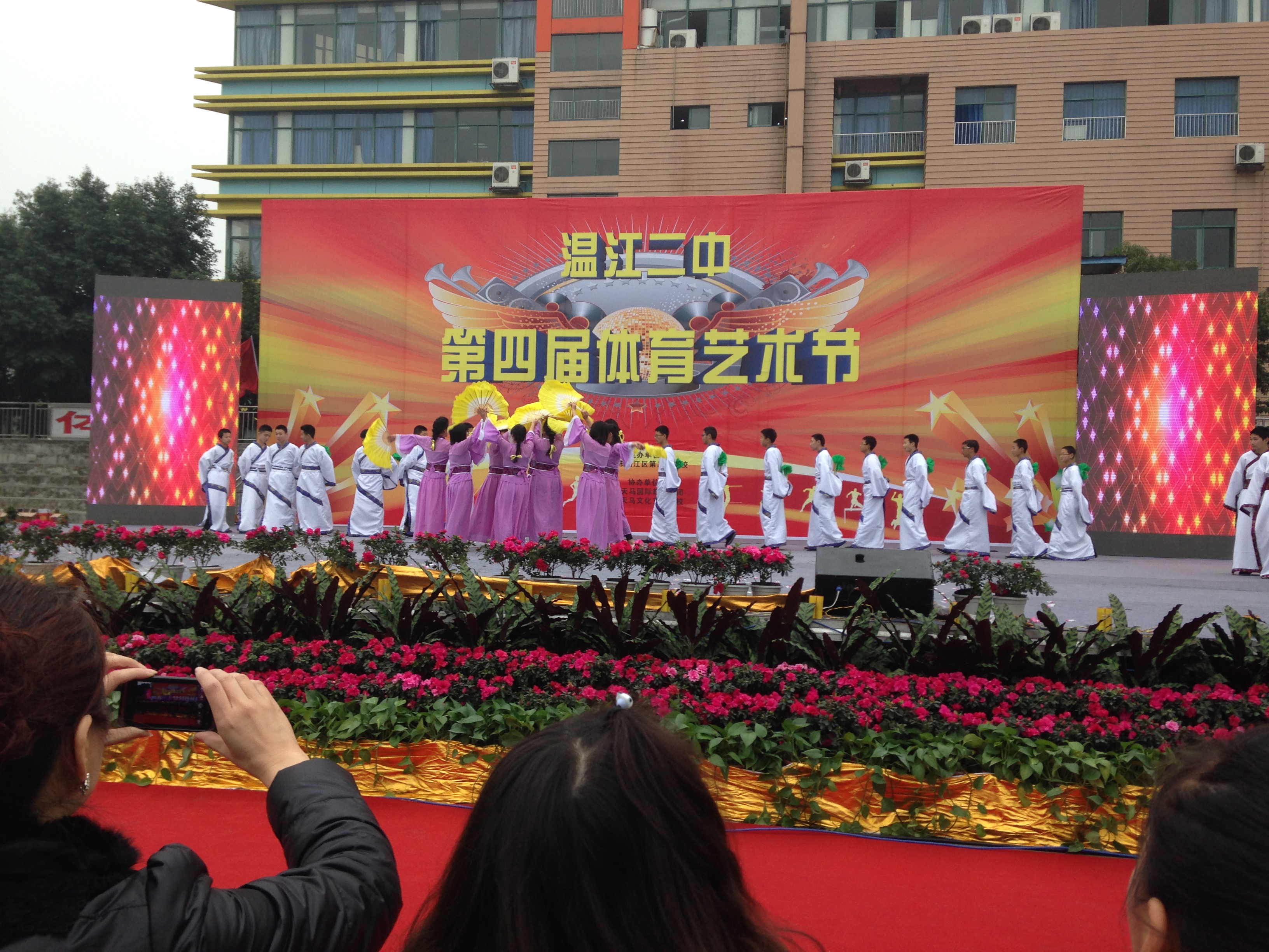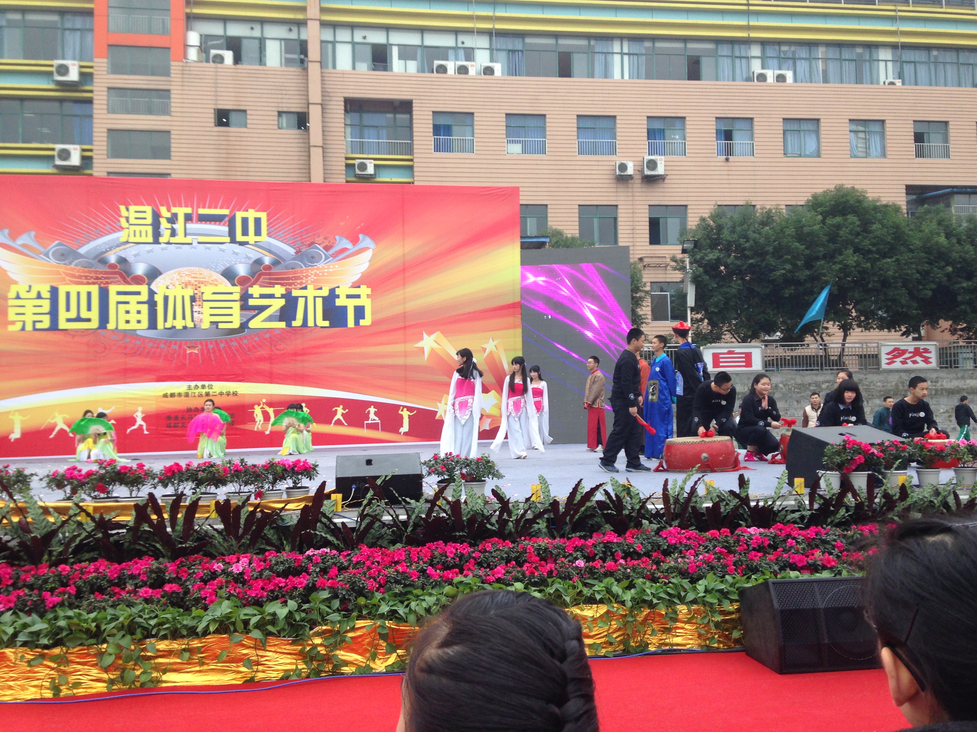 2014年11月26日上午八时,本届体体育艺术节盛大开幕,全校四千多名师生、区委区政府领导、区教育局领导、社会各界来宾云集学校运动场,温江二中校长李彦康发表热情洋溢的欢迎词,区教育局副局长吕世年致贺词,温江区人民政府副区长何敏郑重宣布本届体育艺术节开幕。