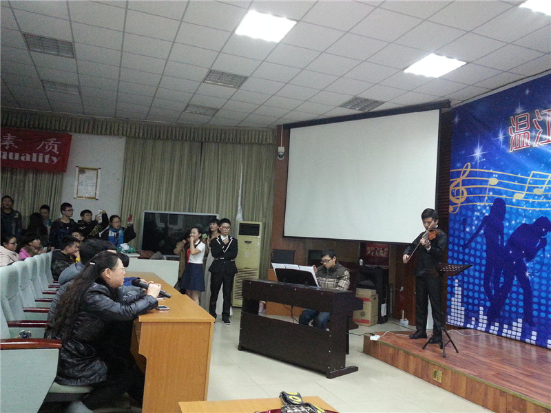 12月30日晚,由温江二中团委、学生会主办,高2016届年级承办的温江二中“2015年元旦文艺晚会”在学校阶梯教室隆重举行,高2016届师生载歌载舞、欢聚一堂,共同迎接新年的到来。学生社团器乐社、街舞社的同学们献上了精彩的器乐和街舞表演。来自艺体班的同学们纷纷上台展示自己的艺术特长,钢琴演奏、小提琴独奏、现代舞、个人独唱、集体合唱等让晚会精彩纷呈。